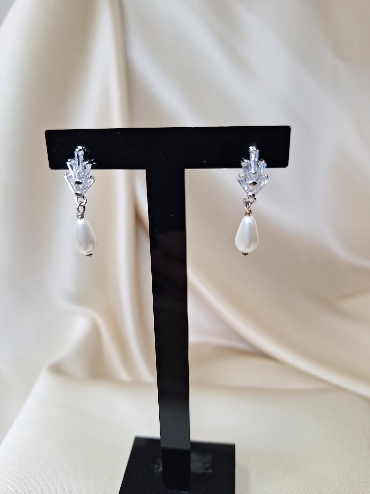 The refined Art Deco-inspired silhouette makes these earrings a beautiful complement to both classic and contemporary gowns, while the delicate movement of the drop design catches the light with every step. Ideal for brides, bridesmaids, or a vintage-loving wedding guest, they strike a perfect balance between statement and subtlety.