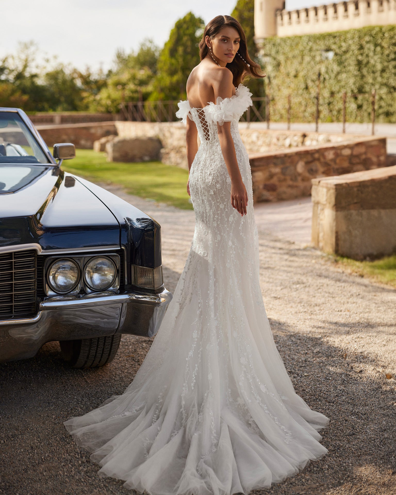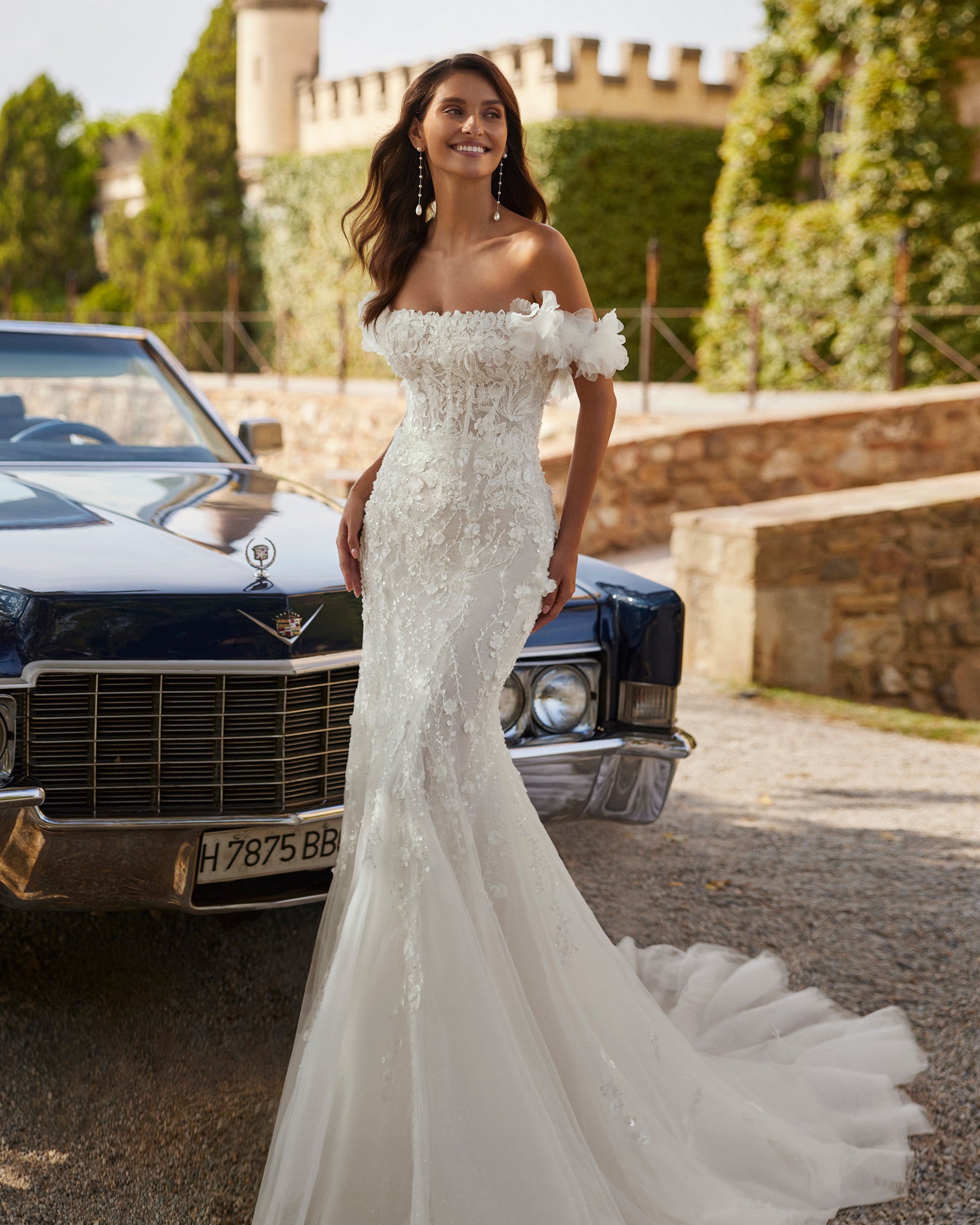 Didier by Adriana Alier is a modern-style fitted wedding dress crafted from contemporary lace and beading. Featuring a flattering strapless neckline and a corset bodice, this gown offers a sleek and sophisticated silhouette. The removable straps provide the flexibility to customise your look, allowing you to transition from a strapless style to a more structured design. A dream bridal look by Adriana Alier, Didier is perfect for brides seeking a blend of modern elegance and timeless beauty.