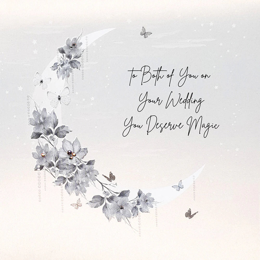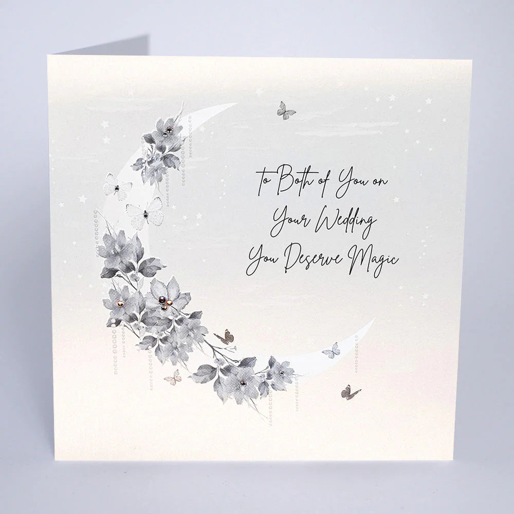 Made from a beautiful iridescent card that literally glows. Each card is uniquely printed individually and then embellished by hand with an array of genuine crystals. These cards are so much more than just a card. They are like jewels.