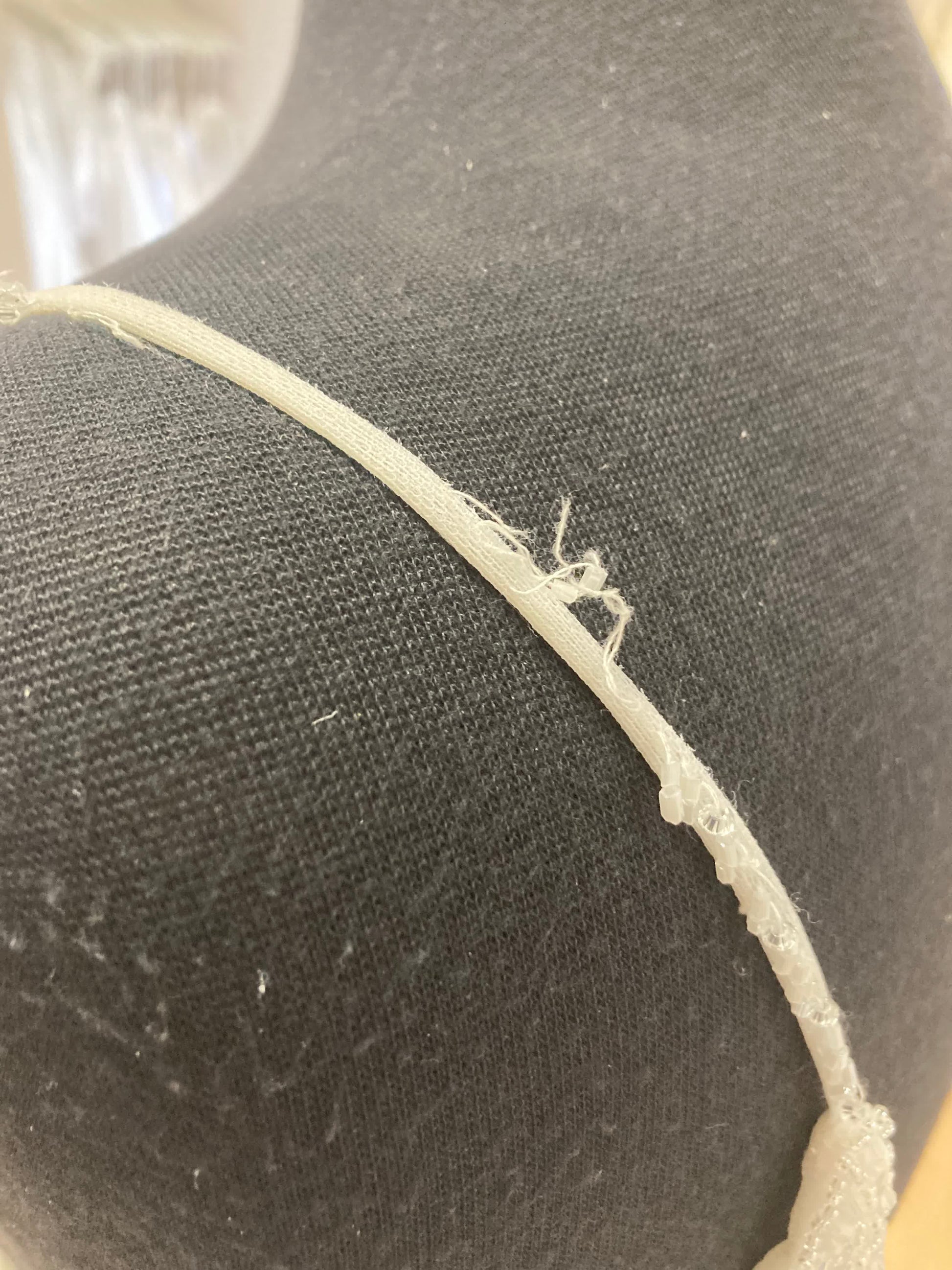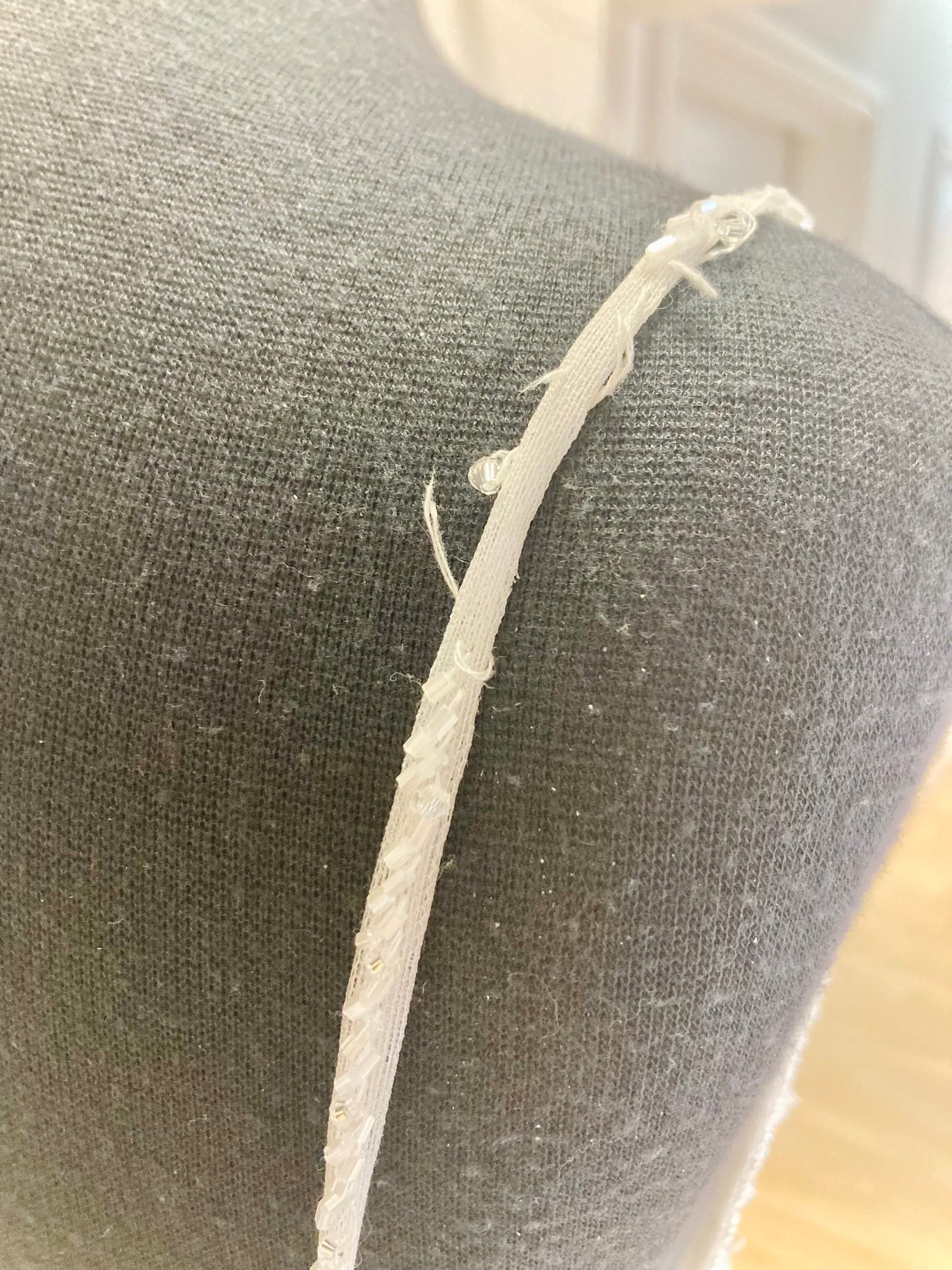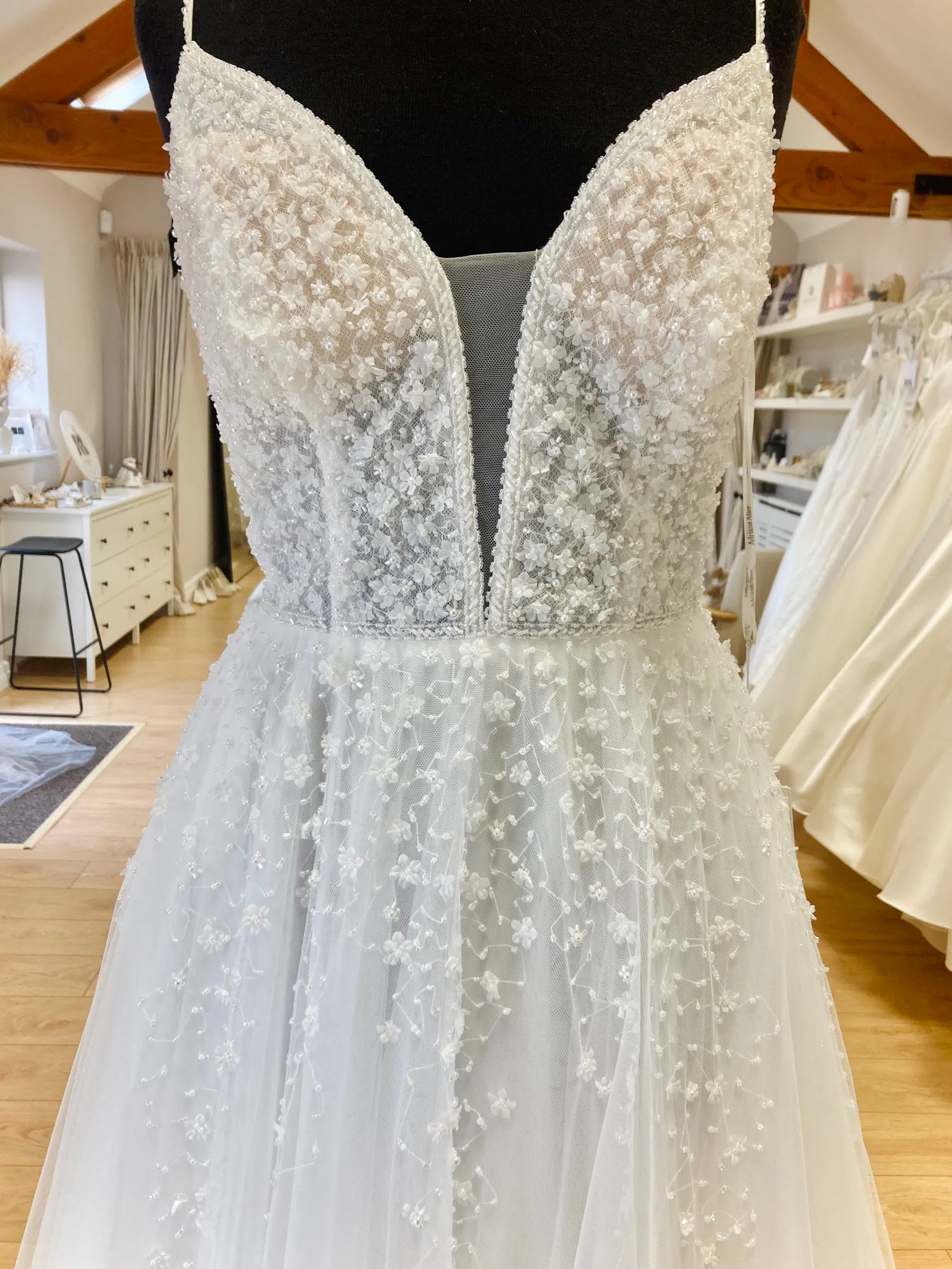 - Repairs required: Yes. Beading on straps needs repairing / replacement. Hook & eye needs replacing. This is a soft tulle skirt so it will likely have some small pulls as it’s a delicate fabric.