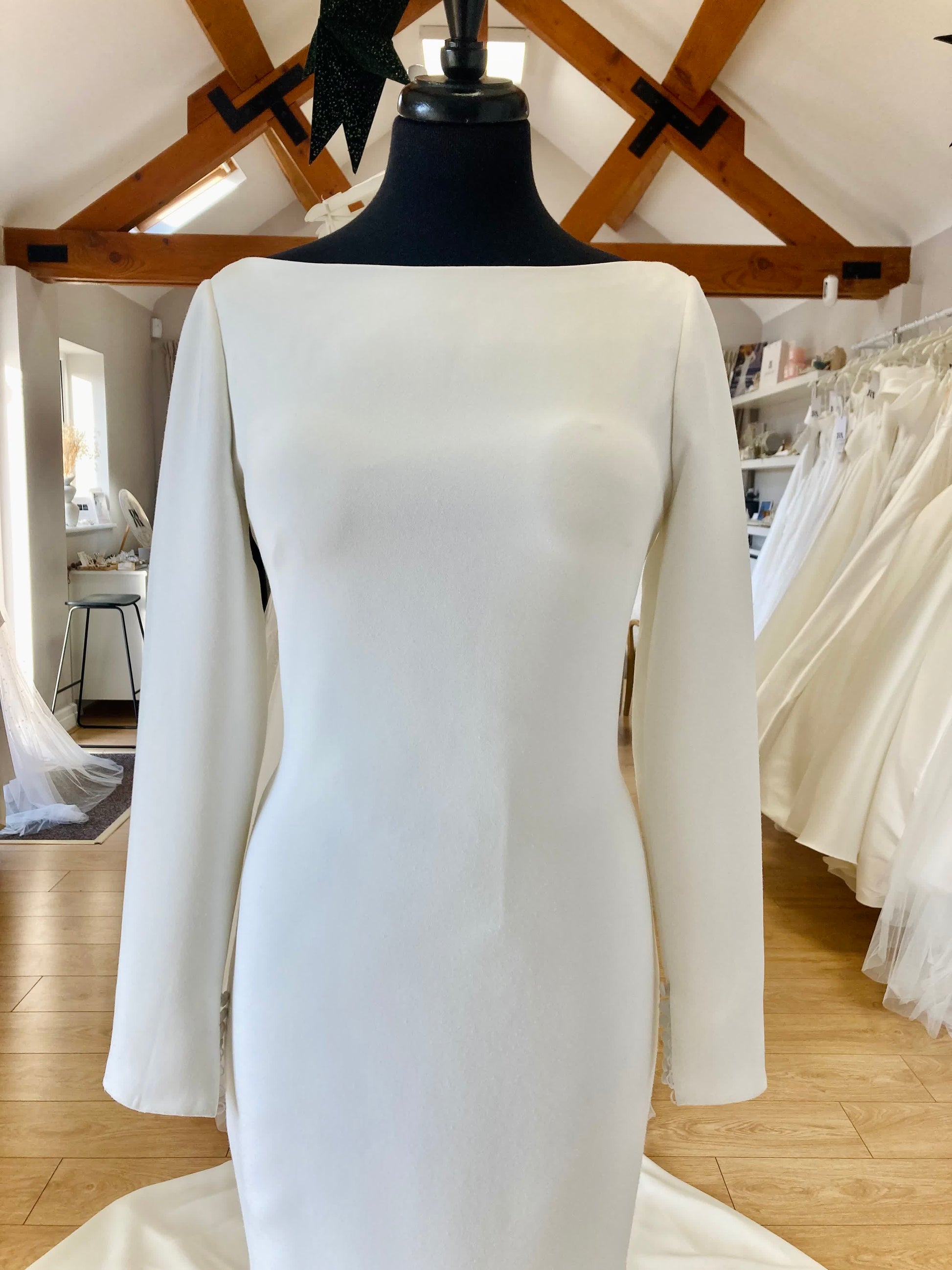 All sample dresses can be reduced in size up to 2 dress sizes. Please check your body measurements against those listed below. All sample dresses are sold as seen with defects, repairs and alterations are not included in the price of the dress.