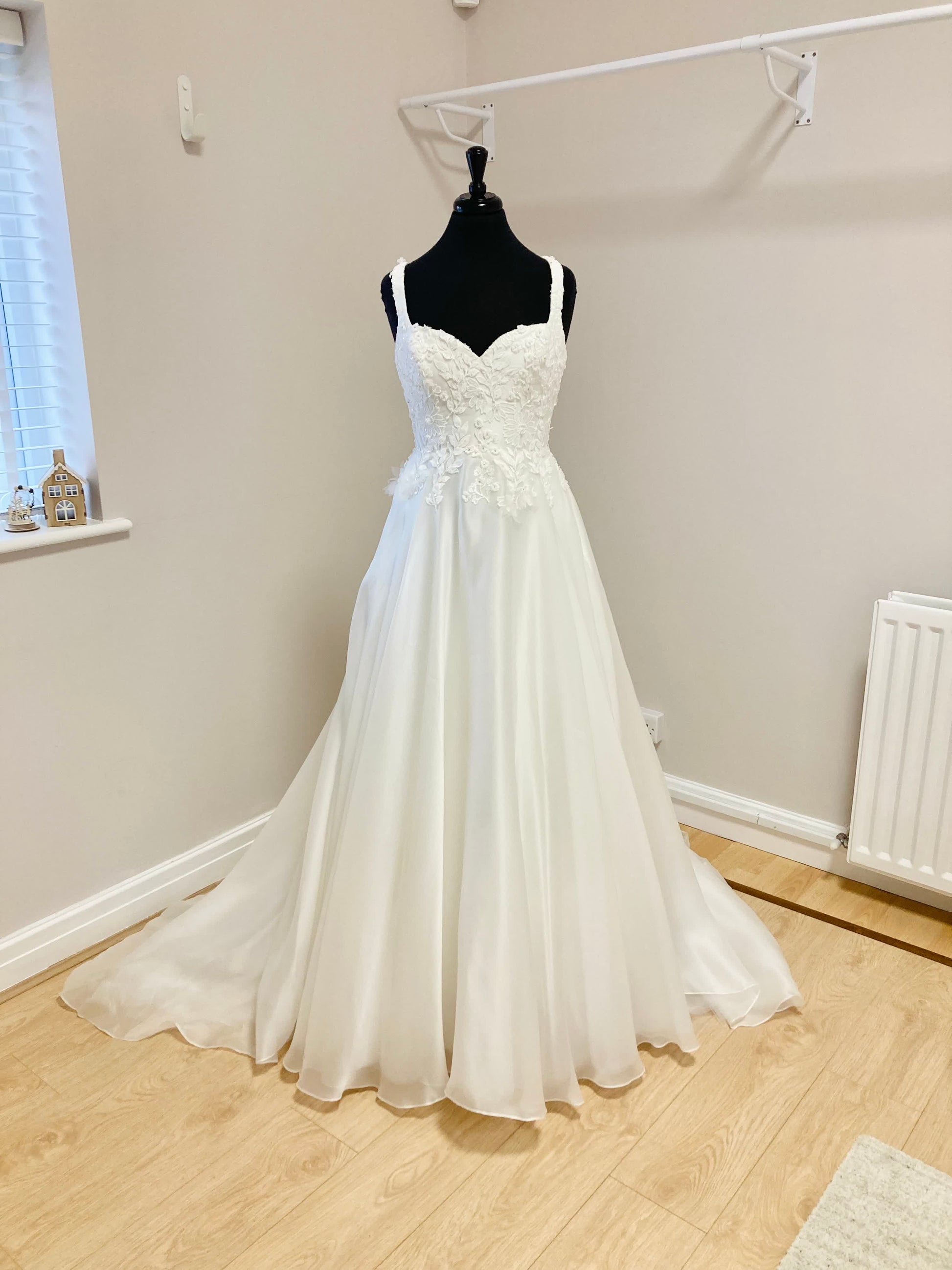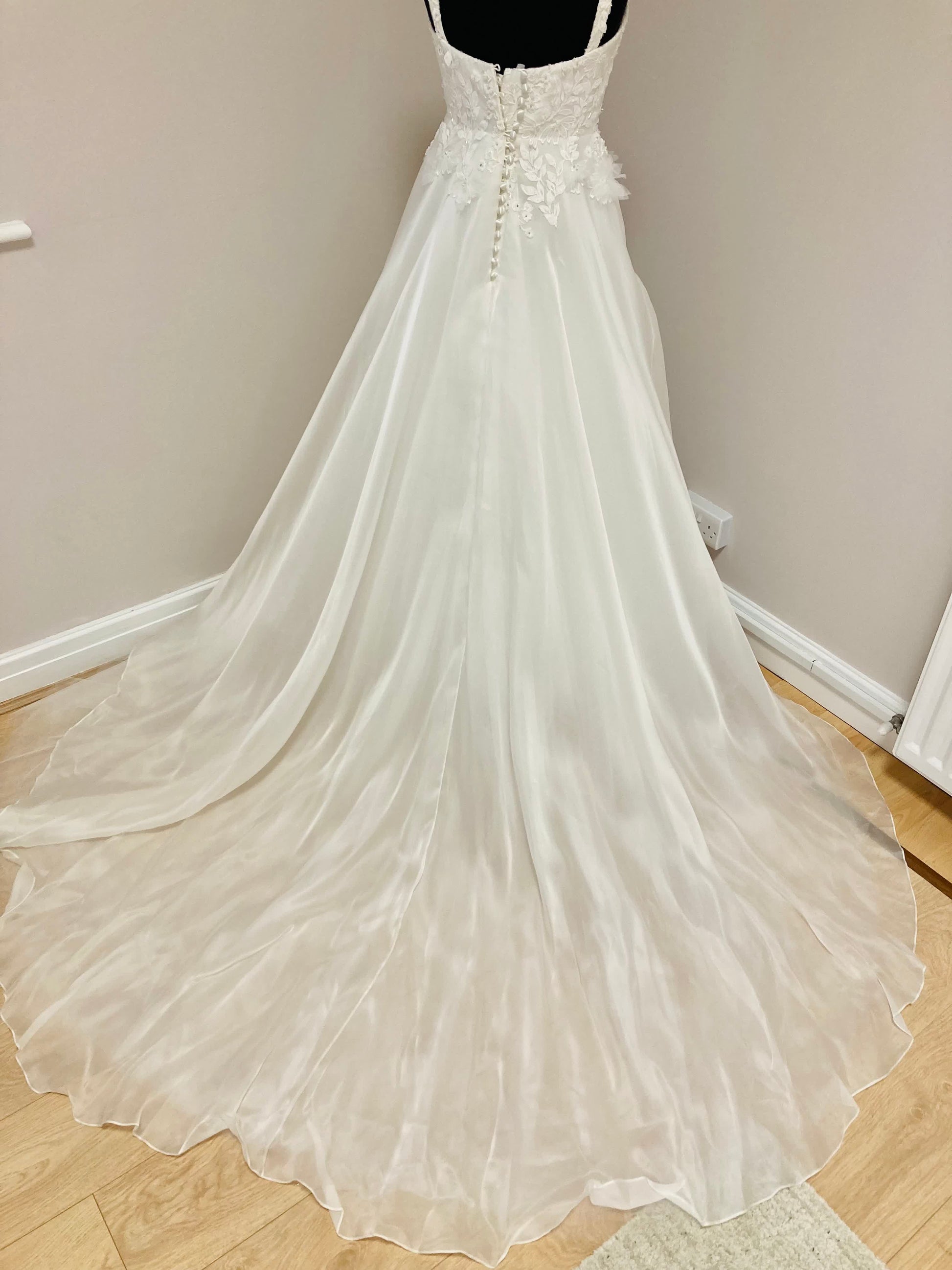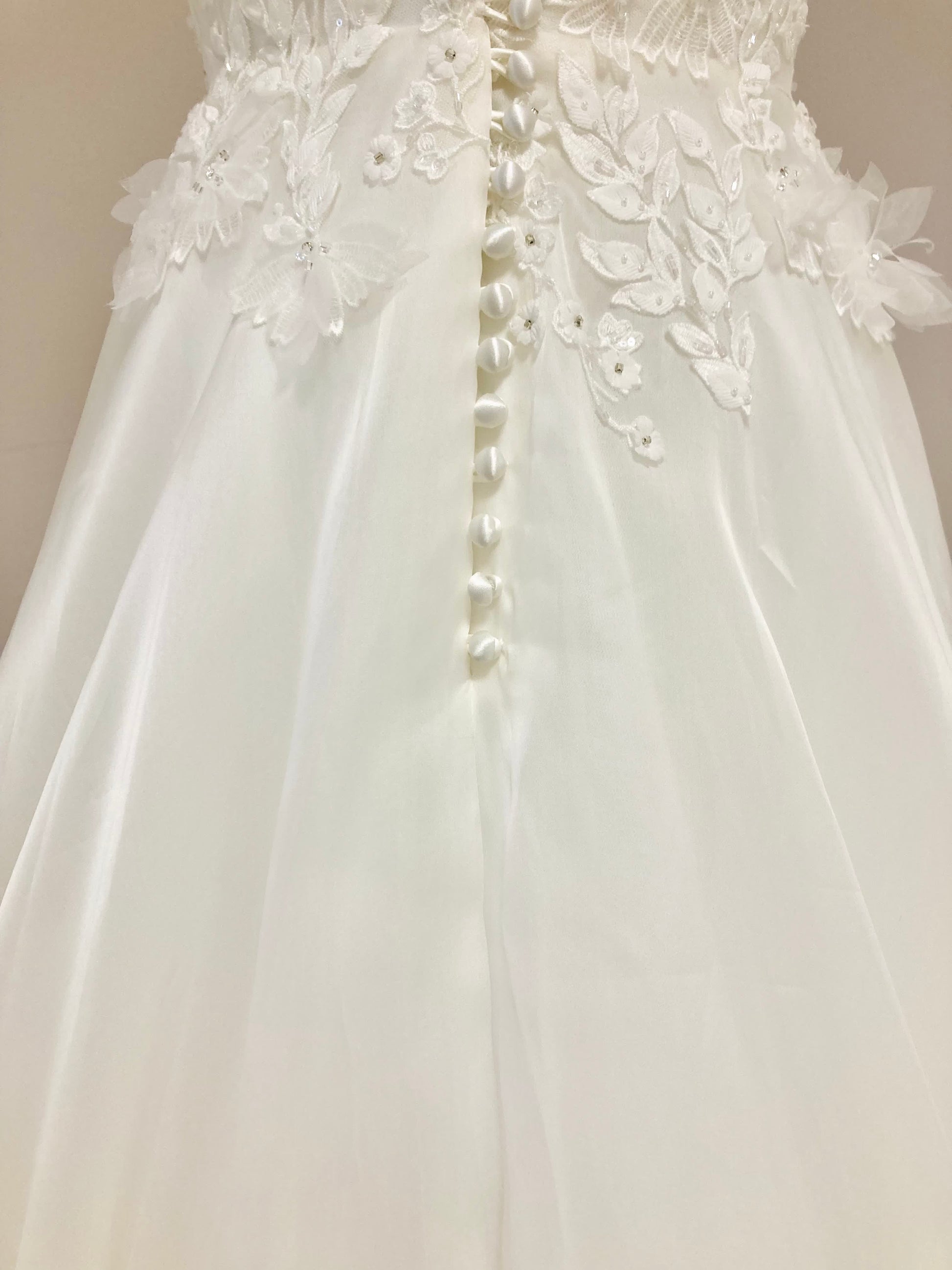 All sample dresses can be reduced in size up to 2 dress sizes. Please check your body measurements against those listed below. All sample dresses are sold as seen with defects, repairs and alterations are not included in the price of the dress.