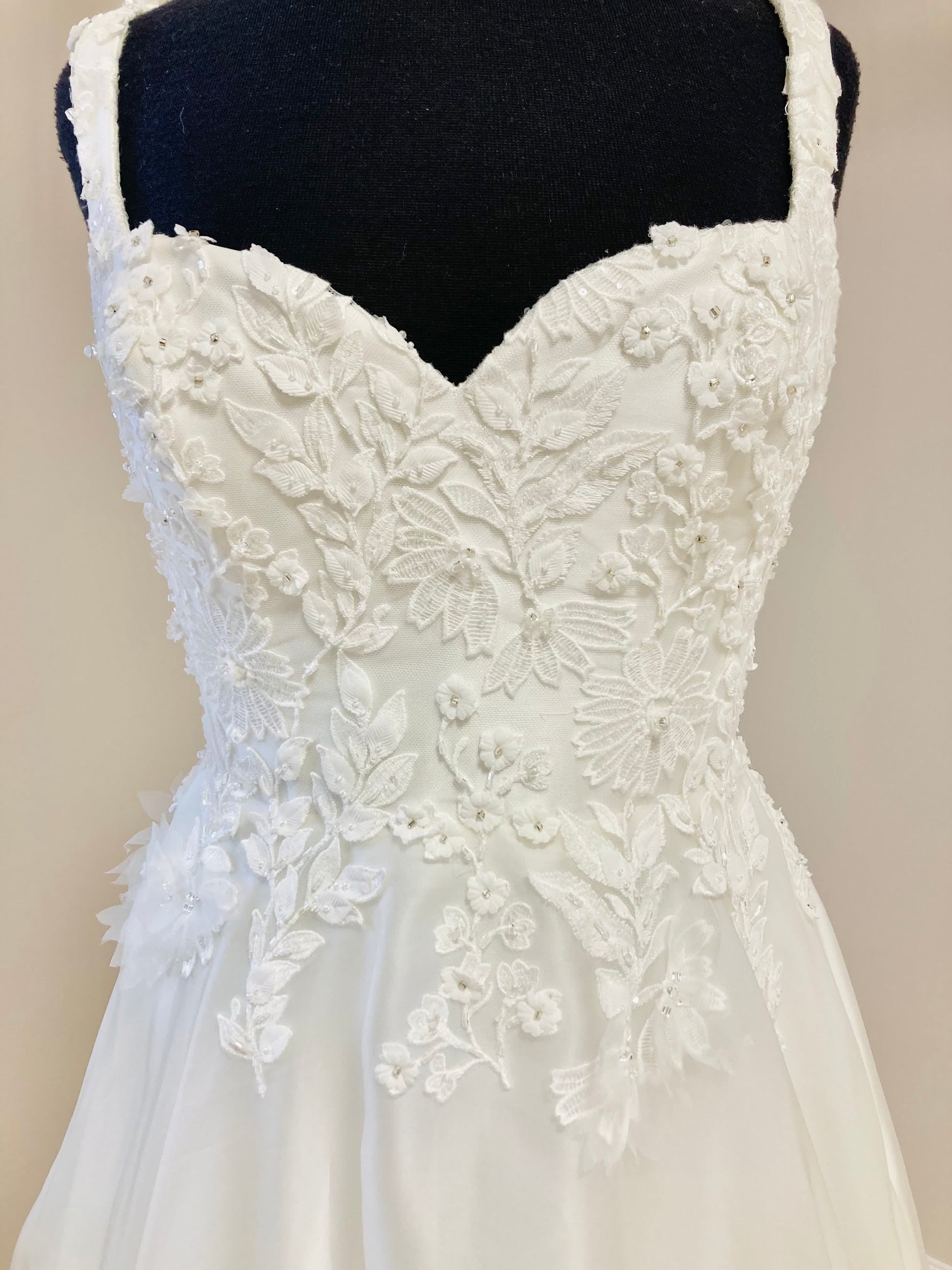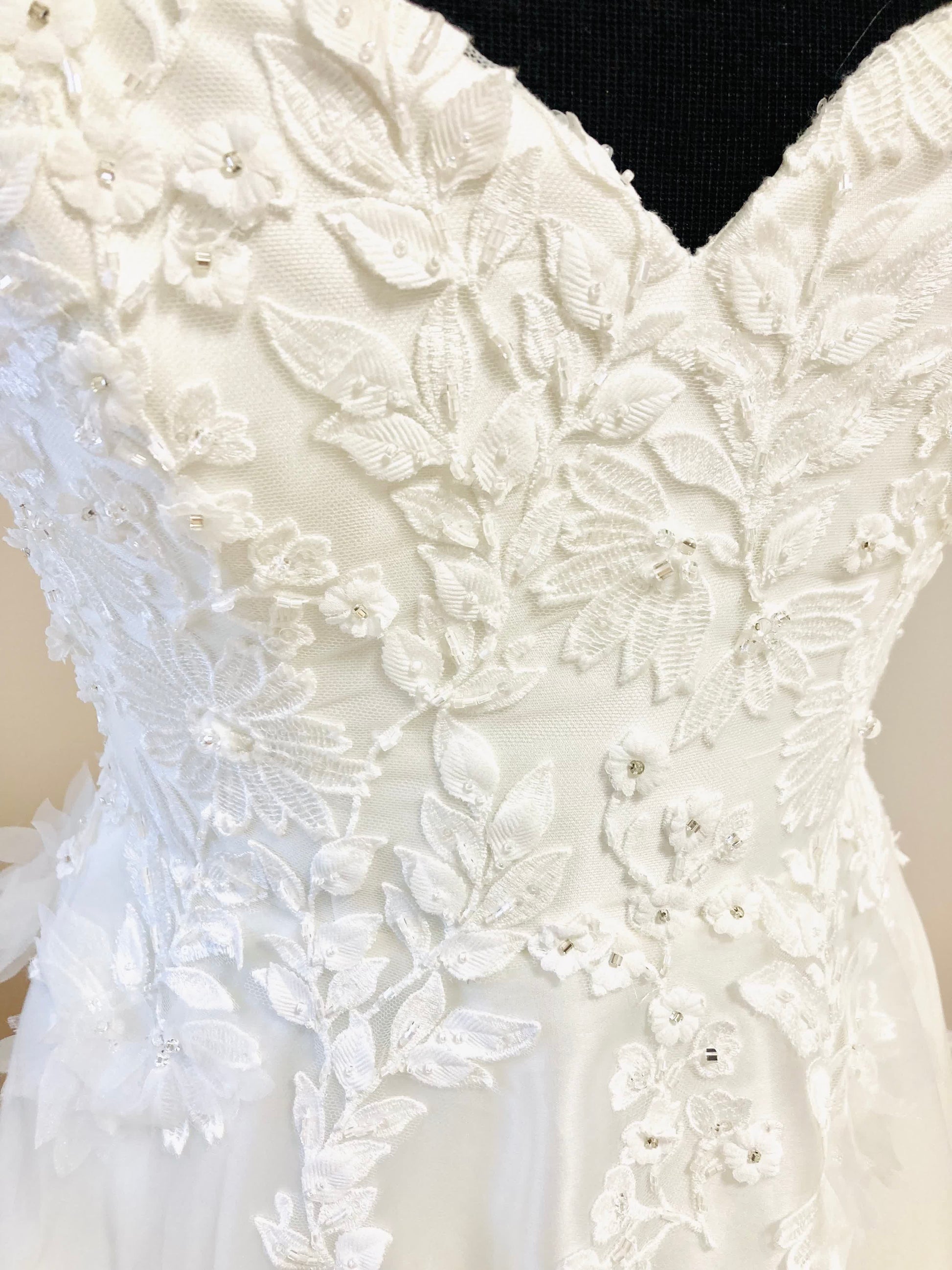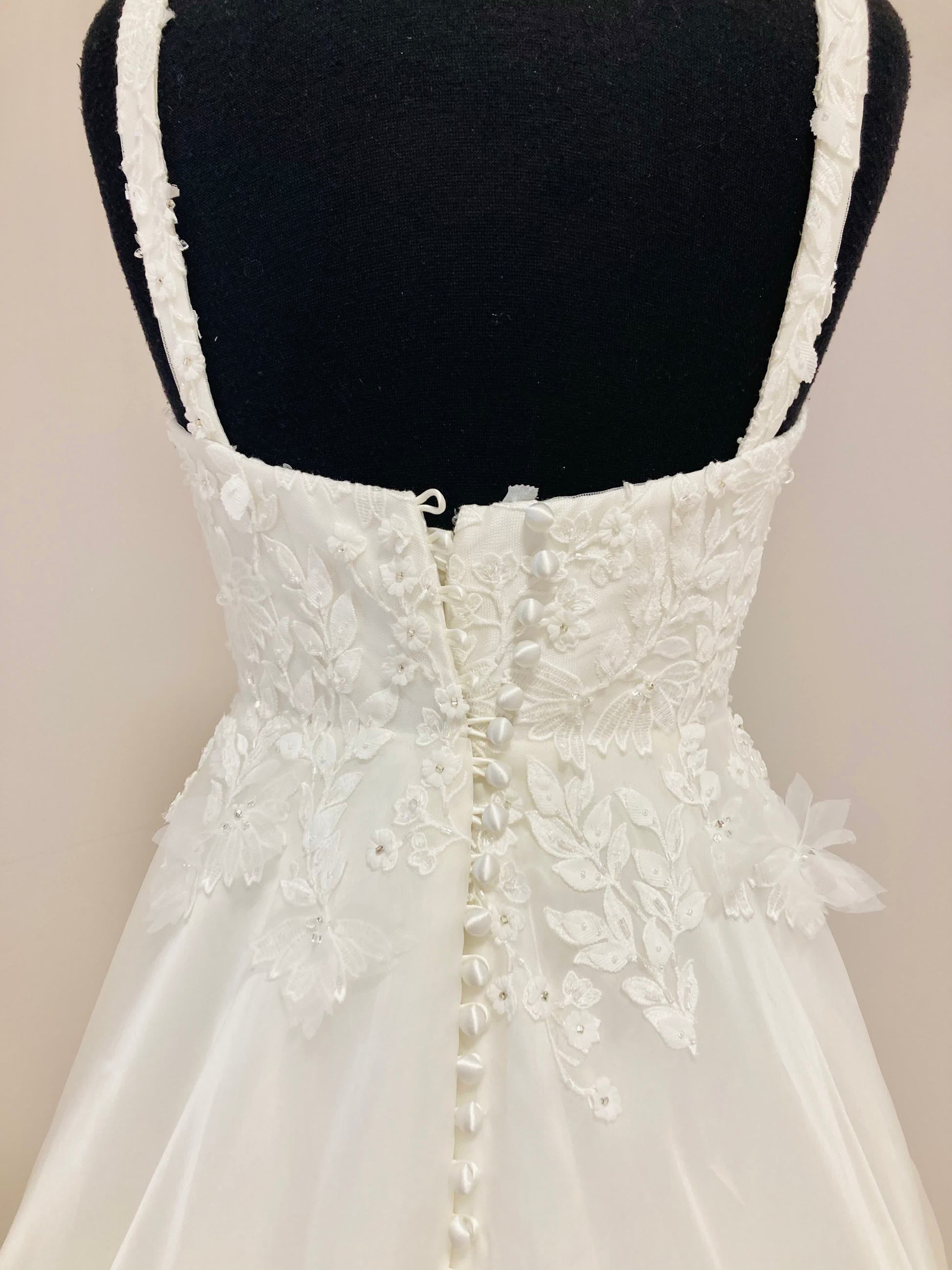 All sample dresses can be reduced in size up to 2 dress sizes. Please check your body measurements against those listed below. All sample dresses are sold as seen with defects, repairs and alterations are not included in the price of the dress.
