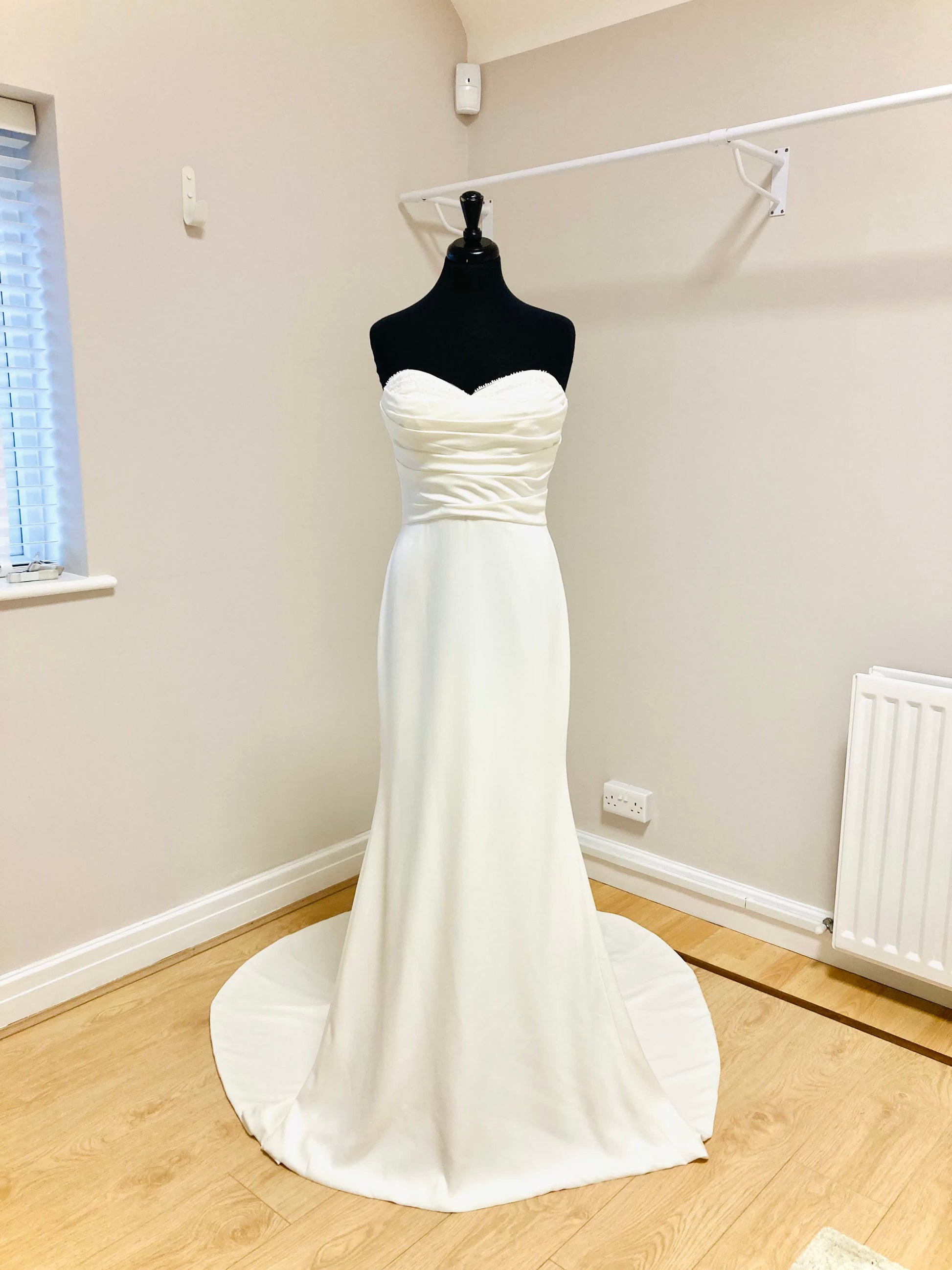 All sample dresses can be reduced in size up to 2 dress sizes. Please check your body measurements against those listed below. All sample dresses are sold as seen with defects, repairs and alterations are not included in the price of the dress.