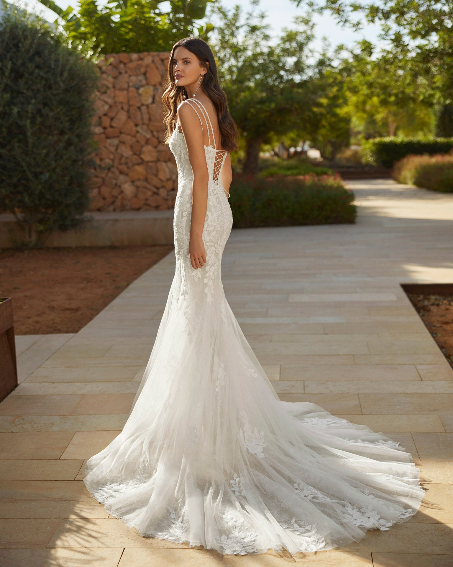 Perfect for brides seeking a lace mermaid wedding dress with a removable overskirt, Semira delivers two distinct bridal looks in one, all with timeless elegance and a touch of drama.